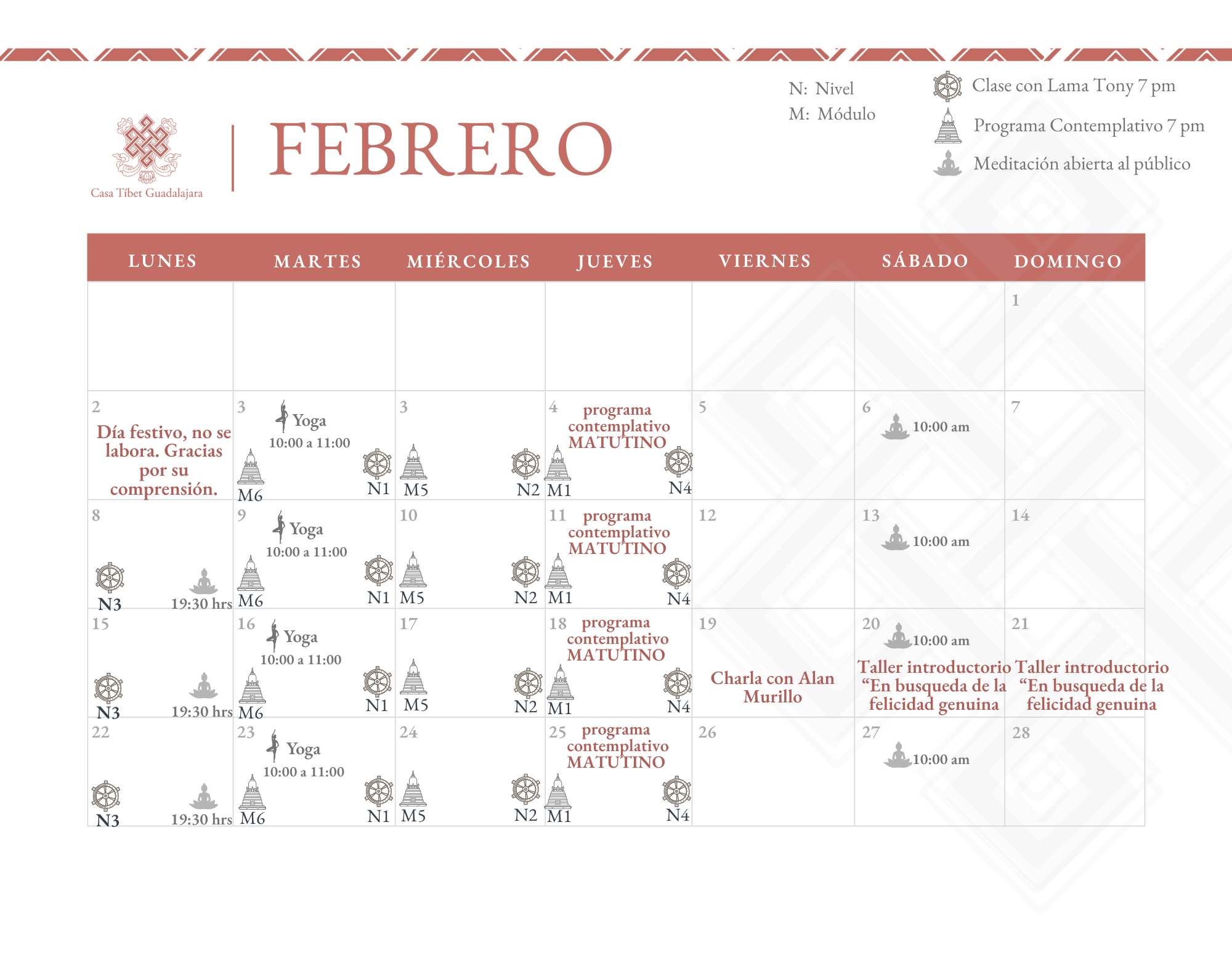 La orientación fundamental de Casa Tibet es Gelug y Kagyu, aunque nuestra institución sirve como sede de todas las escuelas de budismo tibetano debido a su carácter ecuménico.
